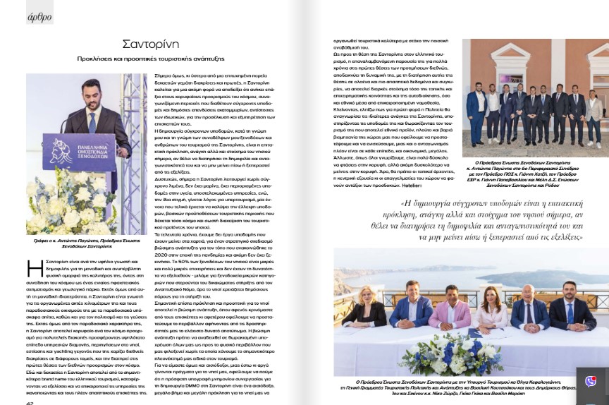 Στο άρθρο του προέδρου της Ένωσης Ξενοδόχων Σαντορίνης Αντώνη Παγώνη αναφέρονται τα εξής :