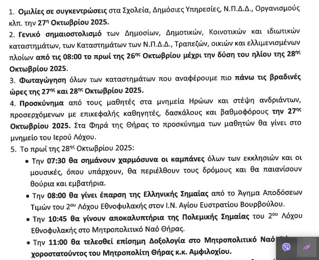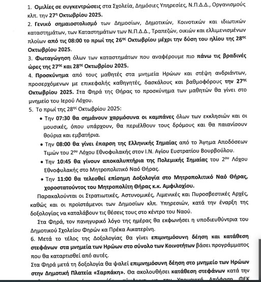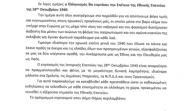 Ο εορτασμός της Εθνικής Επετείου της 28ης Οκτωβρίου 1940 στον Δήμο Θήρας